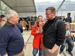 Etwas ruhiger ging es bei Hanssens zu. Hanssens ist bekannt für ihre ungewöhnliche Herangehensweise an die Geuze-Produktion. Anstatt eine Mischung aus jungen und gereiften Lambics zu verwenden, setzen sie auf ausschließlich gereifte Biere, was zu einem intensiveren und komplexeren Geschmack führt. Bei gemütlicher Gartenatmosphäre konnten die außergewöhnlichen Spezialtäten verkostet werden.