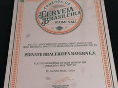 Ablutec, the organiser of the Concurso Brasileiro de Cervejas and the Semana da Cerveja Brasileira, honoured the association Privte Brauereien as the organiser of the European Beer Star for its work and efforts in the field of beer culture. The award was presented by Brazilian Tourist Board Southern Manager Luciano Boico.